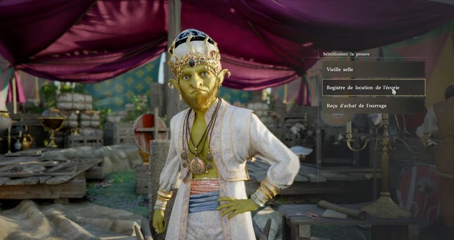 Après avoir validé le registre de l’écurie, Shakatu vous parlera du réquisitoire de Scrave. Le choix à faire ici est de parler du registre des transactions. Ce choix est important car il débloque de nouvelles possibilités de dialogue, vous permettant de faire des progrès dans la quête et de découvrir de nouvelles informations cruciales.