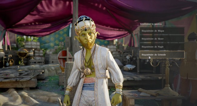 Le réquisitoire de Grimsle est la prochaine étape. Il est essentiel de répondre correctement en mentionnant l’attestation de séjour. Ce choix permettra de débloquer la dernière partie de la mission et vous permettra de continuer sans encombre. N’oubliez pas de valider cette réponse pour avancer.