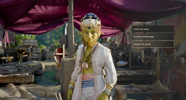 Enfin, la dernière étape de cette série de dialogues vous amène au réquisitoire de Katan. La bonne réponse ici est le rapport du garde. En validant ce choix, vous terminerez les dialogues avec Shakatu et pourrez passer à la suite de la mission.