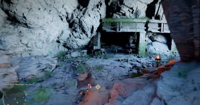 Une fois dans la zone de Pierrudite, dirigez-vous vers les grottes troglodytes. Ces cavernes se trouvent à proximité d’une forge, un endroit clé pour débloquer la cape. Dans cette grotte, un mur brillant attire votre attention. Ce mur nécessite une action spécifique pour être franchi.
