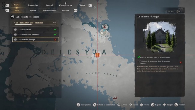 Pour commencer cette quête, vous devez vous rendre au manoir étrange, situé à l’est de Délésiye. L’entrée principale est facilement repérable derrière une grande statue dorée. Une fois à l’intérieur, préparez-vous à résoudre plusieurs énigmes et à explorer les nombreux secrets du manoir.