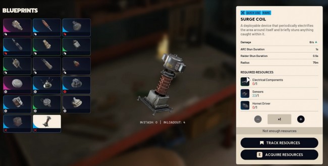 Le Surge Coil est un dispositif déployable qui, une fois posé sur le sol ou contre un mur, émet des décharges électriques à intervalles réguliers. Tout joueur ou ennemi se trouvant dans son rayon d’action est momentanément étourdi, ce qui en fait un piège particulièrement utile. Sa fonctionnalité est assez simple : posez-le dans une zone de passage, et il fera le travail à votre place, immobilisant les ennemis ou même les autres joueurs qui s’approchent de trop près.