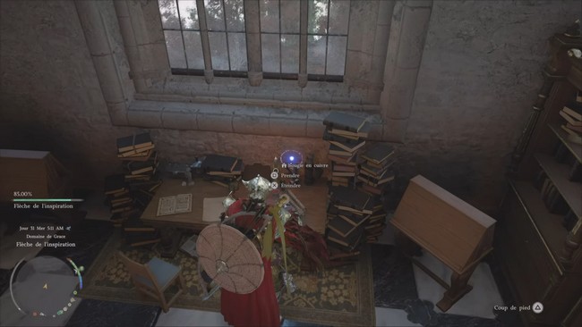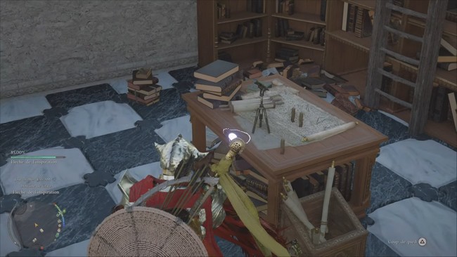 La pointe se trouve sur un autre bureau, juste après une pile de parchemins. Elle est facilement accessible et devrait être l’un des derniers objets à collecter.