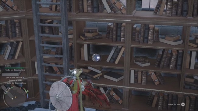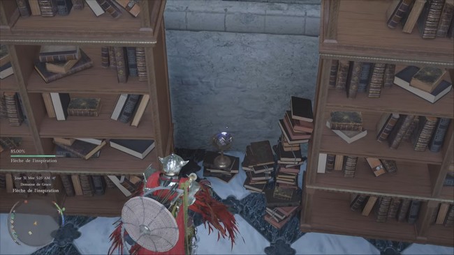 Ces trois éléments sont situés sur les différentes bibliothèques de la pièce. Prenez votre temps pour bien les repérer et les déposer dans la vasque dorée.