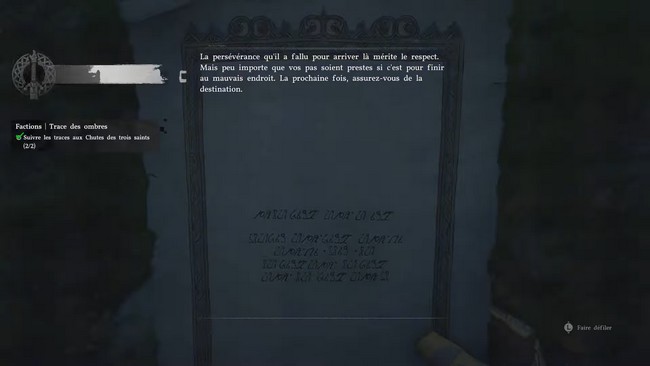 - Trouver et lire la troisième note : Après avoir creusé dans le bon monticule, vous découvrirez la troisième note du voleur. Lisez-la pour valider cette étape et continuer votre quête. Une fois cette note obtenue, vous serez prêt à poursuivre la mission « Trace des ombres ».