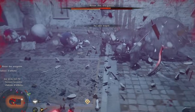 Reine des araignées - Dirigez-vous vers le château et débarrassez-vous des araignées en éliminant notamment la Reine des araignées située sur les hauteurs du château. Une fois cette créature vaincue, vous pourrez commencer à réactiver les machines de la zone.