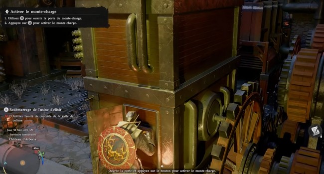 - Une fois la géante araignée détruite, commencez par activer l’interrupteur général pour débloquer les différents leviers dans la zone. Relancez les mécanismes, notamment celui du système de lavage et des engrenages.