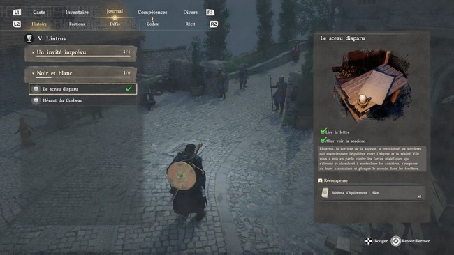 Il est essentiel d’atteindre le chapitre 5 du jeu pour rencontrer la sorcière Elowenn. Cette rencontre débloque la mission « Le sceau disparu », et c’est cette étape qui vous permettra d’accéder aux fonctionnalités liées à la fabrication de l’équipement abyssal. Vous ne pourrez pas fabriquer ces équipements avant d’avoir complété cette mission.