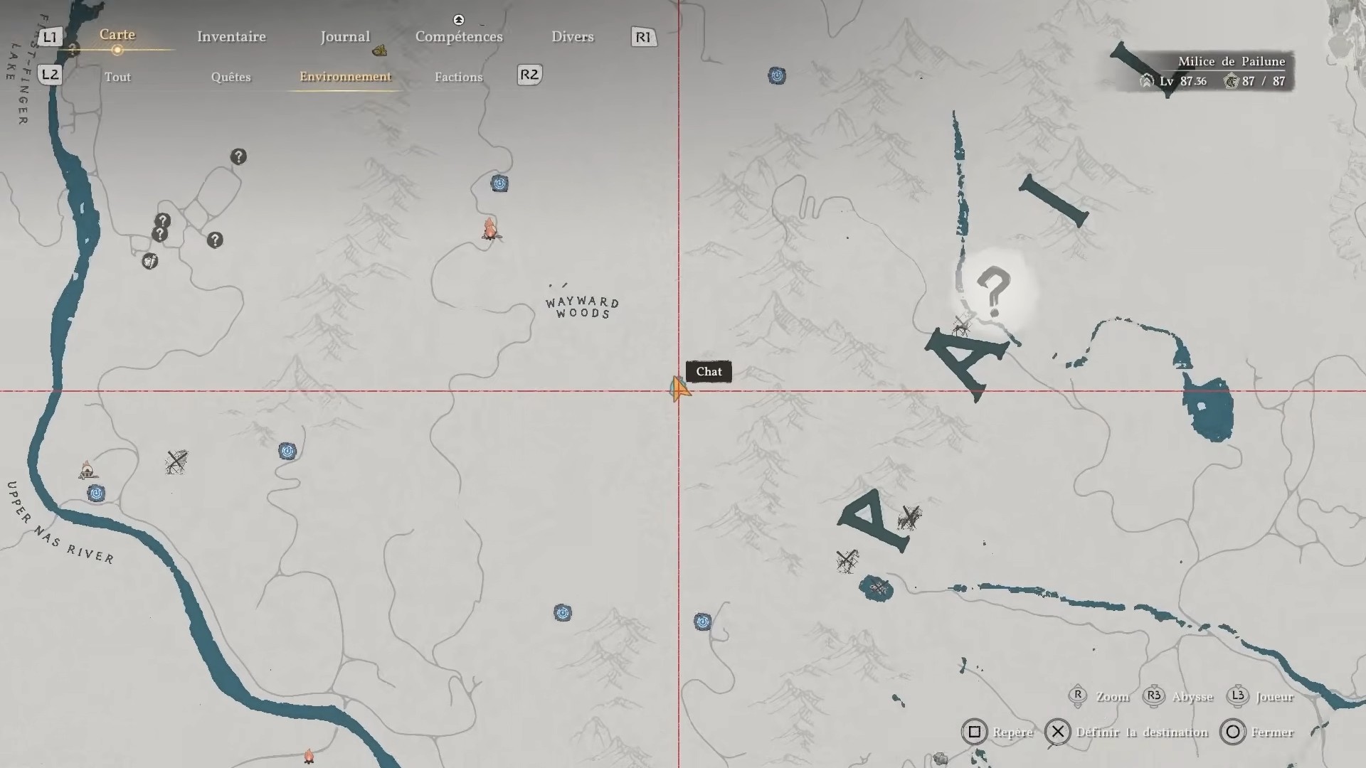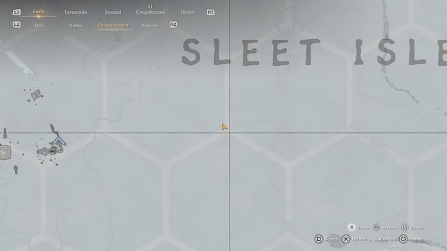 Ce n’est pas l’endroit le plus évident, mais un indice précieux est l’intersection juste en dessous du « L » du mot « sleet ». Si vous avez trouvé le bon endroit, vous verrez un petit campement avec une mission associée. C’est ici que tout commence, alors assurez-vous de suivre les indications avec attention.