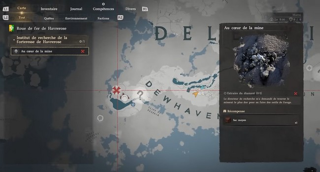 Ce diamant est essentiel pour lancer la recherche qui vous permettra de débloquer la fabrication de la tronçonneuse. La quête pour récupérer ce diamant est simple et marquée sur votre carte, ce qui facilite la progression.