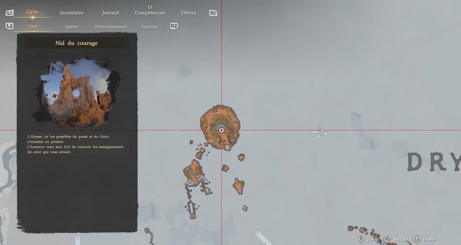 - Emplacement spécifique : Une fois dans la zone des abys, vous devrez vous rendre dans le nid du courage, une petite caverne secrète. C’est là que l’épée Destin Sombre vous attend. Assurez-vous de bien explorer cette zone, car l’endroit est facilement manquable.