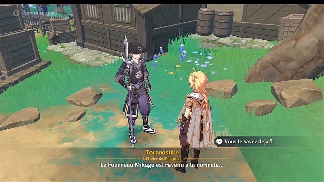 Après la scène avec Xavier, retournez voir Toranosuke, le soldat du campement de Kujou, pour terminer cette chaîne de quêtes et obtenir vos récompenses !