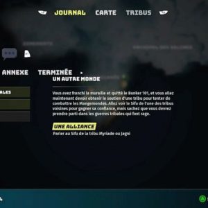 Vous avez franchi la muraille et quitté le Bunker 101, et vous allez maintenant devoir obtenir le soutien d’une tribu pour tenter de combattre les Mangemondes. Allez voir le Sifu…