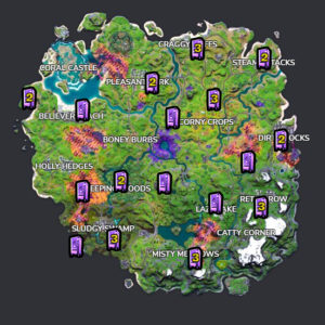 Fortnite : Visiter un avant poste de l’IO ou le convoi de l’IO, Emplacements avant poste de l’IO – défi saison 8